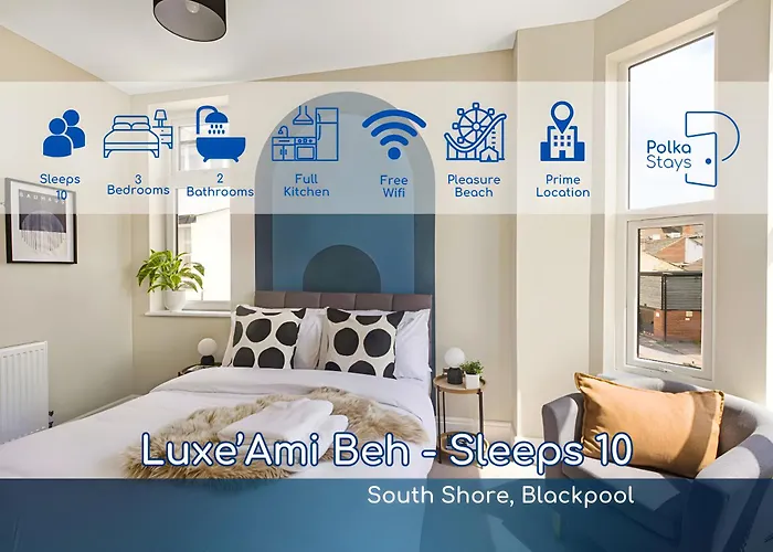 Das 89 m² große Luxe Ami Beh Large Group Apartment By Polkastays Blackpool liegt in der Nähe von verschiedenen Attraktionen der Stadt: das Brooks Collectables and Toy Museum befindet sich unter anderem 5 Minuten zu Fuß von hier entfernt.